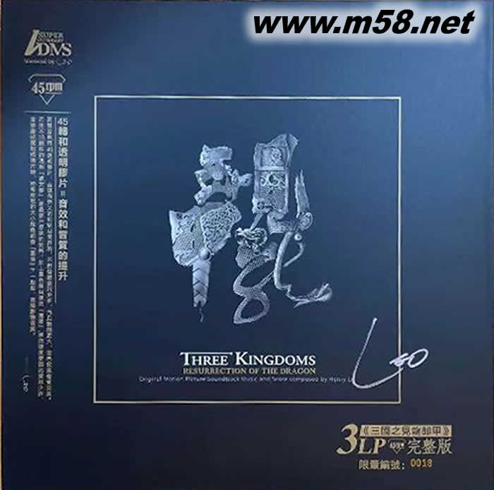 三國之見龍卸甲 電影原聲大碟 45轉 黑膠 透明膠(m58.net) 黎允文[非常發燒]電影音樂精選 45轉透明水晶膠 (2LP) 《三國之見龍卸甲》以外,香港發燒音樂教父Leo Fung馮煒國將香港電影配樂大師Henry Lai黎允文最杰出音效的其它大電影原聲帶作品中最佳音效的曲目剪輯成一張發燒試音大碟,并以45轉透明水晶膠壓制LP, 成為現今市場上最佳音效之發燒LP唱片之一, Leo 大師制作務求做到盡善盡美, 測試后音色比33 1/3轉黑膠 LP又跨進一大步, 為ADMS品牌今年出版之最佳試音發燒天碟.