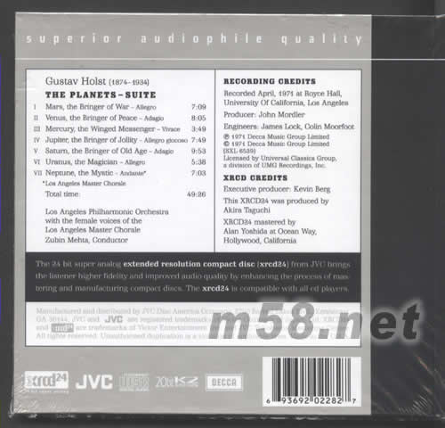 價格為估,以實到貨為準! THE PLANETS 行星 XRCD(m58.net) 請點看產(chǎn)品正、背面大圖 MADE IN U.S.A HOLST霍爾斯特 由洛杉磯交響樂團演奏