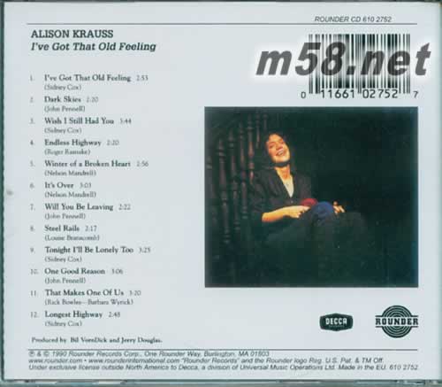 I‘VE GOT THAT OLD FEELING(m58.net) 多次被評為世界最美的女聲 坐擁11座格萊美獎。 最著名的歌曲When you say nothing at all(永遠有多遠) 被無數人當作心中永恒的經典。 冷山中那首動人的The Scarlet Tide的演唱者.獲得2004年奧斯卡最佳電影歌曲提名。 在和聯合車站樂隊的合作后,Union Station的Bluegrass威力又像是幫她往前推了一把,讓已經擁有翅膀的Alison又添加一道光環。 當一位鄉村電臺DJ某天在節目中播放Alison精選專輯主打歌「When You Say Nothing At All」后,每天如浪潮般的點歌頻率,開啟了鄉村音樂的一個新傳奇。Alison在1995年與Union Station合作的精選大碟,曾是鄉村音樂排行榜第2名、流行音樂專輯第15名,全美銷量達二百萬張,這對于一個鄉村歌手而言,是相當大的數目。不過與其說專輯得到如此多的成功是個意外,不如承認Alison無可否認十分甜美的歌喉,及用心演唱的態度,才是讓她長久以來受歌迷肯定的主要原因。 16歲時,Alison Krauss(艾莉森.克羅絲)與美國鄉村音樂最重要的獨立唱片公司Rounder簽約,發行的第一張個人專輯,立刻成為樂評家的最愛。18歲首度獲得葛萊美獎,之后又繼續獲得無數鄉村音樂獎項,其中包括11項葛萊美獎,總總的榮耀應該都是因為她從小苦學古典小提琴、民謠小提琴及歌唱技巧。 作為電影「新娘百分百」主題曲「When You Say Nothing At All」原唱者,與羅南詮釋方式不同,Alison溫柔舒服的唱腔,搭配著吉他和鋼琴伴奏,簡單又令人感動不已;樂評家均認為AKUS(Alison Krauss and Union Station)從80年代末至90年代中,將草根藍調音樂從地方性音樂帶領成為全世界均能接受的樂風,在樂壇占有舉足輕重的地位。 1999年,Alison Krauss的專輯《Forget About It》成為金唱片。一年后,她因在《O Brother ,Where Art You》電影原聲專輯中的出色表現而再度引起人們關注,她也因此而成為自Bill Monroe之后,又一位從肯塔基西部群山中突現的藍草歌手。不論在藍草音樂領域還是鄉村主流音樂領域,Alison Krauss和她的樂隊Union Station在過去一年中的出色表現都是不容忽視的。除了在原聲專輯中的合作,他們還同Kenny Rogers等老鄉村歌手和傳統藍草音樂歌手錄制作品。 Alison Krauss 是當今美國藍草音樂的領軍者,“藍草音樂”(Blue Grass)是美國民間音樂的一種,從上世紀二十年代出現并開始發展,在新世紀里未顯絲毫頹敗之勢,因Alison 這樣優秀蘭草歌手的不斷革新,使蘭草音樂煥發出更為迷人的氣質,作品逐漸擠占主流唱片市場份額,且在全球都擁有越來越多的歌迷。 Alison的歌曲之所以吸引人是因其個人演唱魅力和她所創作的精致、純正的蘭草音樂。Alison的歌曲中使用的樂器依然是小提琴、曼陀鈴、木吉他和斑鳩琴這樣蘭草的標準樂器,編曲配器也絕少矯飾,沒有任何世俗渲染的音樂配上Alison Krauss清泉般透徹的歌聲,使得蘭草音樂愈加發揚光大。 聽Alison Krauss唱歌,恍如清晨站在草原上,輕風拂在臉上,和煦的陽光照在身上,抬起頭,看藍天上白云悠然而過…… 《Let Me Touch You For A while》、等曲子反復聽幾十遍,還是覺得時間過得太快。孤獨,而且最好有點寂寞的時候適合欣賞Alison Krauss,無論內心還是環境,都異常安靜Alison Krauss 單薄而清亮的歌聲,時而歡喜昂揚,時而抑郁低吟,很簡單的音樂,很平實地唱著生活中的點點滴滴。這是一種不慍不火,溫暖卻憂郁,柔美又堅強的感動,一種舒服得令人想掉淚的感動。