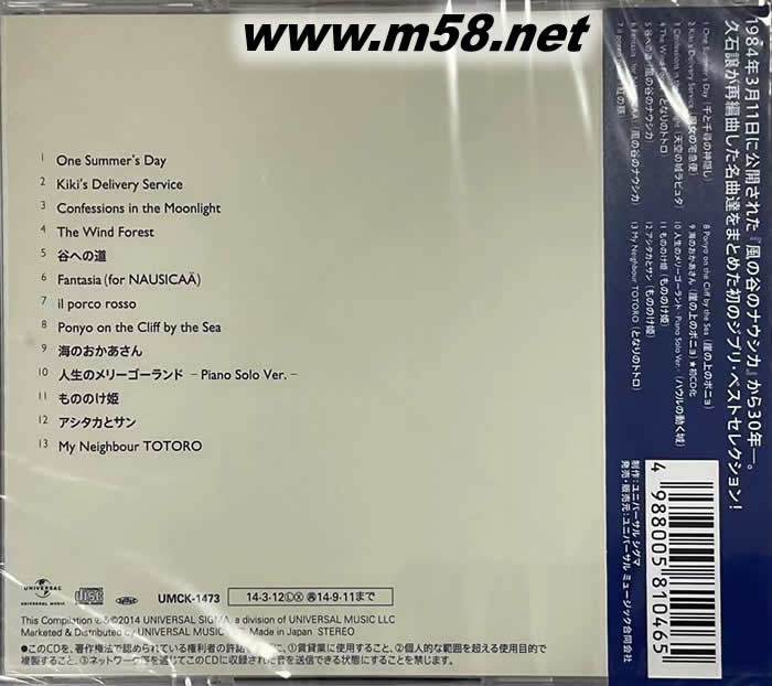 價格為估,以實到貨為準! GHIBLI BEST STORIES 日本版(m58.net) 超靚聲日本版,距離1984年3月11日公開上演的動畫電影「風之谷」到現在已經30年。 音樂大師久石讓個人首張重新編整吉卜力動畫經典音樂精選輯! 30年的光陰,久石讓:從我開始與宮崎先生一起工作,轉眼已經過了30年的光陰。其實應該尊稱他為宮崎駿導演才對,但或許是他開朗爽快的個性,讓身邊的人都會不甶得叫他宮崎先生、更親近一點的人甚至會以宮先生來昵稱他。 從『風之谷』起至最新作品『起風了』為止共10部作品,在制作時每部都有獨自的故事和掙扎、以及真誠的喜悅,在此我并不打算一一贅述這些插曲;但能讓世界上的人觀賞、讓音樂被聽到這件事,對宮崎先生的作品應該是多少有了些貢獻,為此我感到安心了不少,同時也打從心里感謝著。 這張專輯中,集合了這30年的光陰中曾制作收錄在的個人專輯中、并為宮崎先生的電影所譜寫的歌曲們。收錄的歌曲是以鋼琴為主要樂器、并以專輯的概念為主軸重新混音制作的,因而和電影原聲帶中收錄的有所不同。然而無論是以何種方式詮釋(管弦樂、鋼琴獨奏、或是走在街道上的孩子哼唱的旋律)在每首歌曲中都能窺見宮崎先生和我。能完成這些深植人心的作品,當然憑我一己之力是無法辦到的,多虧了許多人士的支持參與,尤其是鈴木敏夫先生更扮演了不可或缺的角色。 由于我向來不喜歡回顧遇往,本來并不想制作像這樣的精選集,在唱片公司的強力要求之下(因為最近并沒有推出個人專輯)才決定推出。 然而,細細聆聽完成的這張專輯,發覺到它扎扎實實建構出獨自的世界,使我能夠肯定這張作品存在的價值。感謝多位相關的人員,若沒有他們就無法完成這張作品。 于是我,從鋼琴音符和音符之間的沉默,乘著30年光陰的河流,看見宮崎先生的臉漸漸浮出笑容而也不由得莞爾了。