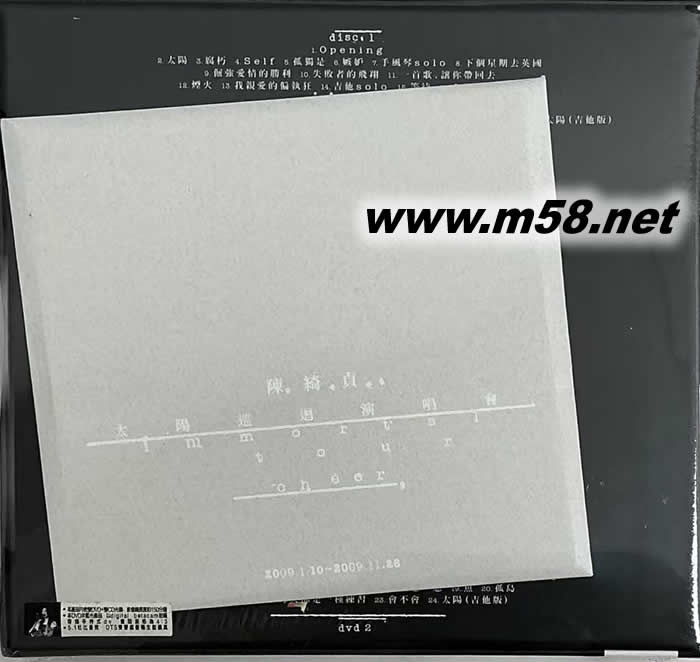 價(jià)格為估,以實(shí)到貨為準(zhǔn)! 太陽巡回演唱會(huì)immortal tour影音記錄 實(shí)錄(2CD+2DVD套裝)(m58.net) 24首陳綺貞創(chuàng)作經(jīng)典曲目,原音重回現(xiàn)場的震撼 不論100個(gè)人或是10000 個(gè)人,都用生命歌唱 她是陳綺貞 從高一那年起,瞞著母親偷學(xué)吉他,參加音樂比賽、親手販賣自制demo、 一路完成音樂夢想。 她獨(dú)具風(fēng)格,始終真實(shí)面對自我。 2009年,她與六位臺(tái)灣本土樂手,以"太陽"這個(gè)溫暖、分享、追尋的概念, 完成了第一次的亞洲巡迴演唱會(huì)。 超過十萬人次的獨(dú)特靈魂參與了這次的搖滾之旅。 由兩座金曲獎(jiǎng)制作人 鍾成虎操刀制作 知名錄音大師 楊大緯現(xiàn)場錄音混音 葛萊美獎(jiǎng)入圍臺(tái)灣設(shè)計(jì)大師 蕭青陽感動(dòng)全設(shè)計(jì) 忠實(shí)傳達(dá)現(xiàn)場的感動(dòng),值得收藏。