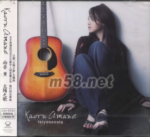 TAIYOUNOUTA(海外版)(m58.net) 繼[在世界中心呼喊愛情]\[現在,很想見你]后,被譽為是純愛日劇三部作完結篇的[太陽之歌],同樣在電影大獲成功后改拍成日劇,由當紅女星澤尻ERIKA主演,同時也以劇中女主角一雨音薰之名發行了這首與日劇同名的主題曲.女主角雨音薰因為患了一種名為XP的皮屑病而無法接觸陽光,在有眼的生命里,和病魔奮戰以及和心愛的人相處所交織出歡笑與淚水的動人故事.這部日劇在劇迷們之間造成廣大回響,而本來并非歌手的澤尻ERIKA為了劇情更親自演唱主題曲,這次的單曲發行甚至刷新了日本樂壇的多頂紀錄!除了主題曲的[太陽之歌],在劇中同樣令人印象深刻另一插曲[STAY WITH ME]也一併收錄!DVD的內容為由澤尻ERIKA所演出[太陽之歌]音樂錄影帶