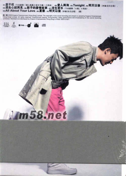 CD 01. 愛不疚 (TVB劇集「溏心風暴之家好月圓」片尾曲) 02. 愛人與海 03. Tonight 04. 明天以後 (林峯 / 泳兒合唱) 05. 憑良心說再見 06. 影子的愛情故事 07. 浮生若水 (TVB劇集「太極」片尾曲) 08. All About Your Love 09. 夏雪 10. 明天以後 (國語) (林峯 / 泳兒合唱)