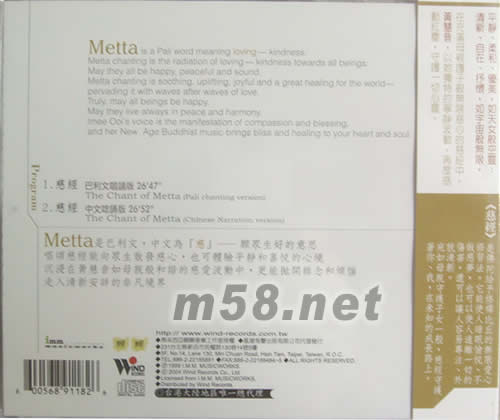 慈經(jīng)(m58.net) <<慈經(jīng)>> 慈經(jīng)是佛陀給予修禪比丘的無限愛心修習法,它能使人睡眠愉悅、不做惡夢,也可以使人遠離一切的火災、毒害及刀兵的傷害,還可以讓人容易專注、外貌清新。 宛如母親守護子女一般,慈經(jīng)守護著你、我,在未知的成長路上。Metta是巴利文,中文為「慈」──愿眾生好的意思,唱頌慈經(jīng)能向眾生散發(fā)慈心,也可體驗平靜和喜悅的心境。沉浸在黃慧音如母親般和諧的慈愛波動中,更能拋開雜念和煩惱,走入清新安詳?shù)姆欠簿辰?