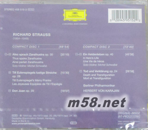 理查史特勞斯:查拉圖斯特拉如是說,英雄生涯..Also Sprach Zarathustra專輯背面圖片