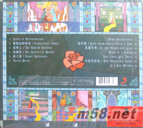 01. Alice in Wonderland 02. 被遺忘的時(shí)光 03. 追夢(mèng)人 04. 玫瑰香 05. 夜上海 06. Moon River 07. Pure Imagination 08. 當(dāng)年情 09. 花樣年華 10. What is a Youth 11. You Only Live Twice 12. 今宵多珍重 13. If I Had Words