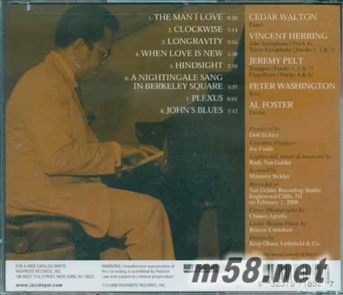 1.The Man I Love.Cedar Walton, Gershwin, G. 2.Clockwise 3.Longravity.Cedar Walton, Heath, J. 4.When Love Is New 5.Hindsight 6.A Nightingale Sang in Berkeley Square.Cedar Walton, Maschwitz, E. 7.Plexus 8.John's Blues