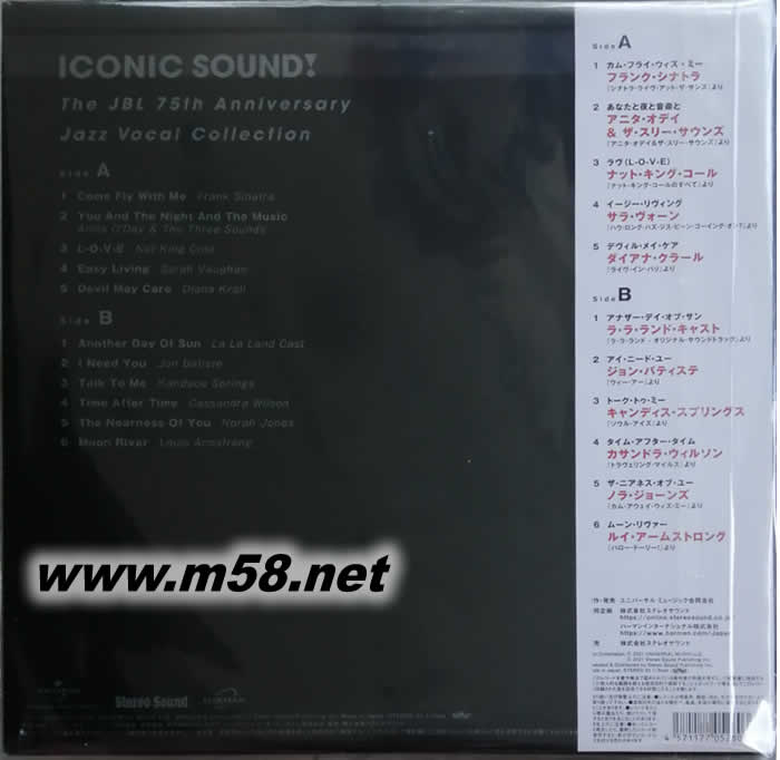 1. Come Fly with Me / Frank Sinatra (from “Sinatra Live at the Sands”) 2. You and the Night and the Music / Anita O'Day & The Three Sounds ( From “Anita O'Day & The Three Sounds”) 3. LOVE / Nat King Cole (from “All about Nat King Cole”) 4. Easy Living / Sarah Vaughan (“How.” From “Long Has This Bean Going On?”) 5. Devil May Care / Diana Cole (from “Live in Paris”) [Side B] 1. Another Day of Sun / La La Land Cast (from “La La Land-Original Soundtrack”) 2. I Need You / Jon Batiste (“We” (From ” Ah”) 3. Talk to Me / Candace Springs (from “Soul Eyes”) 4. Time After Time / Cassandra Wilson (from “Traveling Miles”) 5. The Nearness of You / Nora Jones (from “Come Away With Me”) 6. Moon River / Louis Armstrong (from “Hello Dolly!”) 第一面 1.和我一起飛/弗蘭克·西納特拉 (摘自《西納特拉生活在沙灘上》) 2.你與黑夜與音樂/安妮塔·奧戴與三種聲音 (摘自《安妮塔·奧戴與三種聲音》) 3.愛/納特·金·科爾 (摘自《關于納特·金·科爾的一切》) 4.輕松生活/莎拉·沃恩 (“如何。”從“這種豆子持續多久了?”) 5.魔鬼可能會在乎/戴安娜·科爾 (摘自《巴黎生活》) 第二面 1.又一天的陽光/大地之旅 (選自《La La Land原聲帶》) 2.我需要你/喬恩·巴蒂斯特 (“我們”(來自“啊”) 3.和我說話/坎迪斯·斯普林斯 (摘自《靈魂之眼》) 4.一次又一次/卡桑德拉·威爾遜 (摘自《旅行里程》) 5.你和諾拉·瓊斯的親密關系 (摘自《跟我走吧》) 6.月亮河/路易斯·阿姆斯特朗 (摘自《你好,多莉!》)
