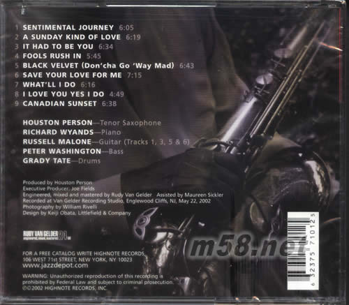 SENTIMENTAL JOURNEY(m58.net) HOUSTON PERSON(ts) RICHARD WYANDS(p) RUSSELL MALONE(g on 1,3,5,6) PETER WASHINGTON(b) GRADY TATE(ds)