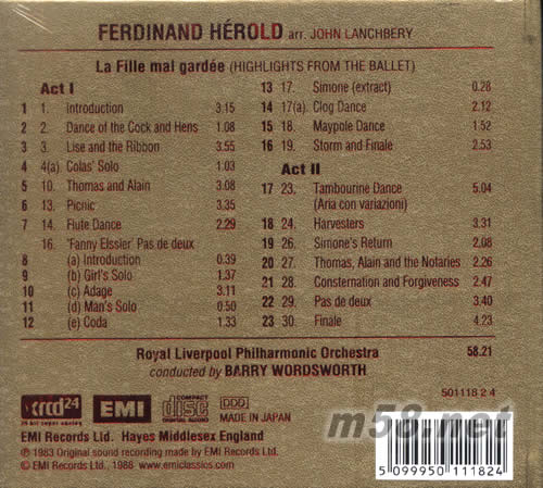 Herold-Lanchbery La fille mal gardee (奶媽/園丁的女兒) XRCD(ABS錄音室XRCD系列)專輯背面圖片