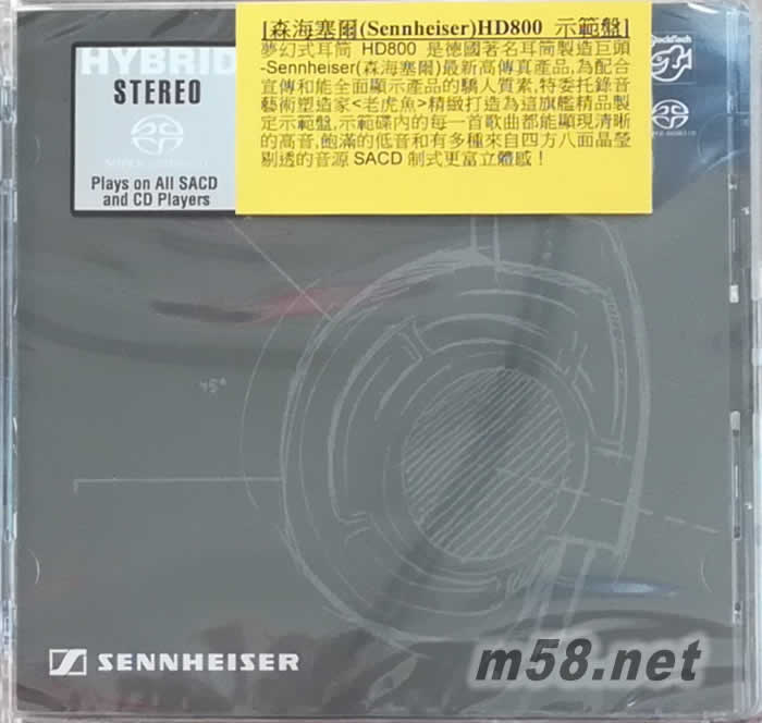 森海塞爾HD800示范盤 老虎魚 SACD(m58.net) 森海塞爾(Sennheiser)是德國著名耳筒製造巨頭,以高傳真的極級質素而傲視同群,其巧奪天功的技術,創(chuàng)造出精密傳真的夢幻逸品HD800耳筒機。為配合宣傳和能全面顯示產品的驕人質素,特委托錄音藝術塑造家「老虎魚」精致打造為這旗艦精品製定示范盤,以其完美的錄音技術得以盡顯耳機的優(yōu)越功能。示范碟內的每一首歌曲都能顯現(xiàn)清晰的高音,飽滿的低音和有多種來自四方八面晶瑩剔透的音響源的音樂,每一個音響源的類別和位置都能分得凊清楚楚,這軟件的功能已經好到不需要專業(yè)人士才能分辨好壞的程度,更能配合硬件難度極高的要求,SACD制式展視更具立體感。