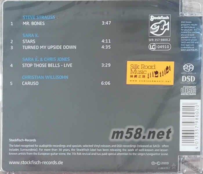 1. STEVE STRAUSS-MR. BONES 2. SARA K.-STARS 3. SARA K.-TURNED MY UPSIDE DOWN 4. SARA K. & CHRIS JONES-STOP THOSE BELLS LIVE 5. CHRISTIAN WILLISOHN-CARUSO