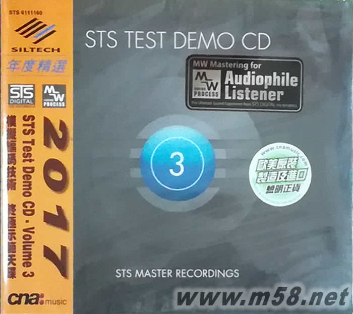 STS TEST DEMO CD VOL.3 (年度精選 2017)(m58.net) 「年度精選2017」是STS Digital與荷蘭著名發(fā)燒線材生產(chǎn)商Siltech第三度攜手合作及命名,選曲更精彩,音效更發(fā)燒。除了STS Digital作品外,本選集更收入全球各大音樂出版公司之最佳錄音,能被挑選在本碟內(nèi)的歌曲,無論在音樂或音效,皆是數(shù)一數(shù)二絕頂發(fā)燒,「年度精選」絕對(duì)是每一位發(fā)燒友每年最期待的精選專集。