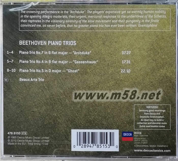 貝多芬:大公三重奏,鋼琴三重奏 VIRTUOSO大師系列(m58.net)