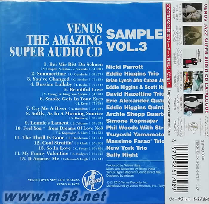 夢幻發(fā)燒試碟王 3 VENUS THE AMAZING Super Audio CD SAMPLER VOL.3(限量單層SACD)專輯背面圖片