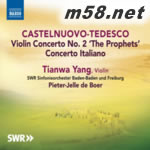 Tianwa Yang (Violin), Pieter-Jelle de Boe (conductor), SWR Southwest German Radio Symphony Baden-Baden and Freiburg Castelnuovo-Tedesco, Mario Violin Concerto No. 1 in G Minor, Op. 31, "Concerto Italiano" 1. I. Allegro moderato e maestoso 00:15:33 2. II. Arioso 00:08:33 3. III. Vivo e impetuoso 00:07:32 Violin Concerto No. 2, Op. 66, "I Profeti" (The Prophets) 4. I. Isaiah: Introduzione - Allegro appassionato 00:13:25 5. II. Jeremiah: Espressivo e dolente 00:09:59 6. III. Elijah: Fiero e impetuoso (ma sostenuto e ben marcato il ritmo) 00:08:03