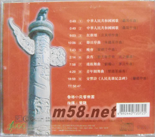 紅旗頌 港版(m58.net) 作為慶祝新中國誕生50周年的禮物——《紅旗頌》。專輯在短短的50余分鐘里,讓人感受到中國人民為爭取獨立自由的可歌可泣的不朽精神和對未來充滿信心的樂觀品性。該碟所有曲目由香港小交響樂團擔任演奏,并由近年一直活躍在國際樂壇的著名華裔指揮家葉聰擔任指揮。有關行家評價這張唱片的錄音是“香港‘小交’建團以來最為出色的演奏”。“雨果”公司采用世界頂級錄音器材如B&K4006、Neumann SM-2、dCS、Nakamichi 100、Sequerra MET等進行錄音編輯壓模,弦樂器絲綢般的柔滑、管樂器光澤般的脆亮、鼓樂器禮炮般的厚重都表明該碟的分析力、空間感、動態等都有不俗表現。