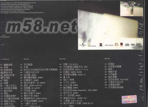 CD 1 01. 繼續追尋 02. 迷戀 03. 迷惘夜車 04. 馬路天使 05. 無風的秋季 06. 石頭記 07. 傷逝 08. 后窗 09. 一個人在途上 10. 今夜星光燦爛 11. 溜冰滾族 12. 禁色 13. 你還愛我嗎? 14. 今天應該很高興 15. 馬路天使 (國語版) 16. 金燕子 (石頭記國語版) 17. 忘記他是她 CD 2 01. 天花亂墜 02. 天問 (最佳中文流行歌曲奬) 03. 排名不分先后左右忠奸 (無大無細超) 04. 十個救火的少年 05. 淫紅塵 - 黃耀明 06. 舞吧舞吧舞吧 - 黃耀明 07. 你真偉大 - 黃耀明 08. 每天你愛多一些 - 黃耀明 09. 愛式 - 黃耀明/軟硬天師 10. 玫瑰園 - 劉以達與夢 11. 不夜情 - 黃耀明 12. 愛比死更冷 - 黃耀明 13. 春光乍泄 - 黃耀明 14. 萬福瑪利亞 - 黃耀明/關淑怡 15. 下世紀再嬉戲 - 黃耀明 16. 一額汗 - 劉以達 17. 了了 - 劉以達/胡蓓蔚 CD 3 01. 流星 - 王菲 02. 天花亂墜之墜亂花天 - 草蜢 03. 忘記他是她 - 關淑怡/C.Y.Kong 04. 石頭記 - 陳慧琳/雷頌德 05. 今夜星光燦爛 - 胡蓓蔚/Pal 06. 萬人迷 07. 每日一禁果 08. 小王子 - 黃耀明 09. 人山人海 - 黃耀明 10. 風月寶鑒 - 黃耀明 11. 花天走地 (Magic Carpet Mix) - 黃耀明/蔡琴 12. 光天化日 - 黃耀明 13. 下一站天國 - 黃耀明 14. 漩渦 (GTR Mix) - 黃耀明/彭羚 15. 人鬼獸 - 劉以達/張學友 16. 最好的愛煞人武器 - 劉以達/范曉萱 17. 一一 - 黃耀明 DVD - Music Videos 01. 石頭記 02. 今夜星光燦爛 03. 禁色 04. 馬路天使 05. 天花亂墜 06. 溜冰滾軸 07. 忘記他是她 08. 十個救火的少年 09. 你還愛我嗎 10. 今天應該很高興