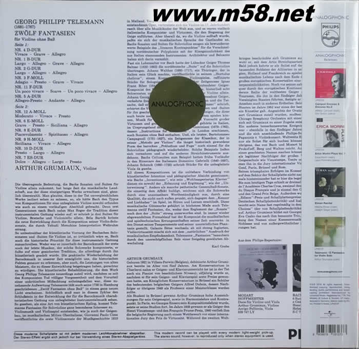 泰雷曼:12首無伴奏小提琴幻想曲Telemann : 12 Fantasias For Violin Solo 黑膠(m58.net) 原始類比母帶交由 DG 資深錄音工程師 Rainer Maillard 負責黑膠母帶后期處理 ★ 德國最具歷史與傳統(tǒng)的 Emil Berliner Studios 刻錄黑膠母盤 ★ 德國黑膠壓片廠 Pallas GmbH 壓製 180g 高品質黑膠唱片 演出者: Arthur Grumiaux (小提琴) István Hajdu (鋼琴)