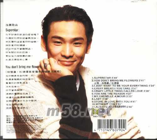 1. SUPERSTAR 2. YOU DON'T BRING ME FLOWERS 主唱:林憶蓮/杜德偉 3. I JUST WANT TO BE YOUR EVERYTHING 4. EVERY BREATH YOU TAKE 5. CRAZY LITTLE THING CALLED LOVE 6. YOU ARE THE REASON 7. MY CHERELLE A'MOUR 8. LADY 9. STONE IN LOVE WITH YOU 10. WITHOUT YOU 11. ALWAYS 巧克力電視廣告歌曲