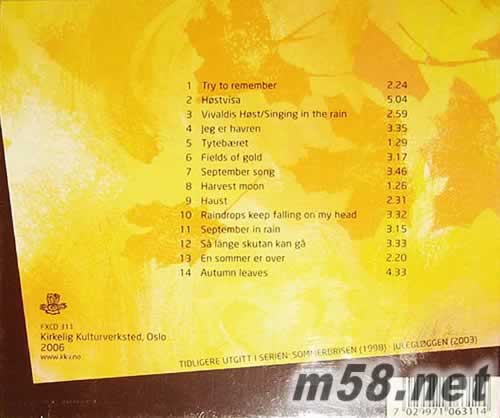 01.Try To Remember 02.H?stvisa 03.Vivaldis H?st - Singing In The Rain 04.Jeg Er Havren 05.Tyteb?ret 06.Fields Of Gold 07.September Song 08.Harvest Moon 09.Haust 10.Raindrops Keep Falling On My Head 11.September In Rain 12.S? L?nge Skutan Kan G? 13.En Sommer Er Over 14.Autumn Leaves