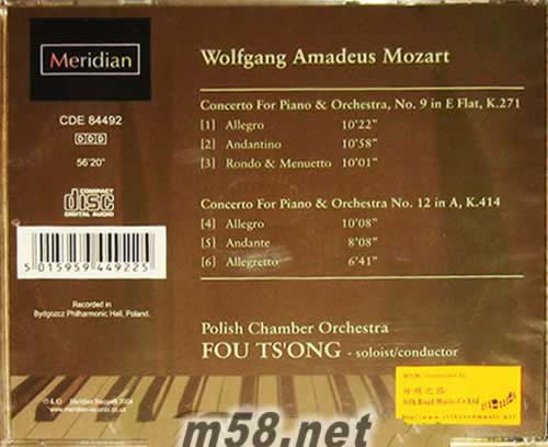 01. Piano Concerto No.9 in E Flat,K.271 - I.Allegro 02. II.Andantino 03. III.Rondo & Menuetto 04. Piano Concerto No.12 in A,K.414 - I.Allegro 05. II.Andante 06. III.Allegretto