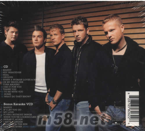 CD 1、MANDY 2、HEY WHATEVER 3、HEAL 4、OBVIOUS 5、WHEN A WOMAN LOVES A MAN 6、ON MY SHOUSDER 7、TURN AROUND 8、I DID IT FOR YOU 9、THANK YOU 10、TO BE WITH YOU 11、HOME 12、WHAT DO THEY KNOW? BONUS KARAOKE VCD 1、MANDY 2、IF I LET YOU GO 3、MY LOVE 4、FLYING WITHOUT WINGS 5、WHEN YOU’RE LOOKING LIKE THAT 6、SWEAR IT AGAIN 7、I HAAVE A DREAM 8、SEASONS IN THE SUN 9、HEY WHATEVER(MUSIC VIDEO)