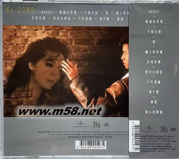2025年12月同時發(fā)行的UHQCD 限量版 8804487 0602488044974 譚詠麟 迷惑 8804489 0602488044899 張學(xué)友 真情流露 8804494 0602488044943 張國榮 Summer Romance 87 8804495 0602488044950 鄧麗君 15週年 8804496 0602488044967 王靖雯 天空 8804497 0602488044974 譚詠麟 牆上的肖像 8804501 0602488045018 張學(xué)友 吻別 8804502 0602488045025 張國榮 Salute 8804504 0602488045049 羅文 . 甄妮 射鵰英雄傳 8804506 0602488045063 陳慧嫻 歸來吧