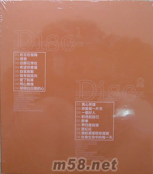 Disc 1 01. 壯志在我胸 02. 感受 03. 但愿花常在 04. 希望你會懂 05. 自我挑戰 06. 我有我路向 07. 愛了就算 08. 問心無愧 09. 明明白白我的心 Disc 2 01. 真心英雄 02. 你給我一片天 03. 一個好人 04. 對得起自己 05. 醉拳 06. 男兒當自強 07. 面紅紅 08. 潮起潮落陪你渡過 09. 在我生命中的每一天