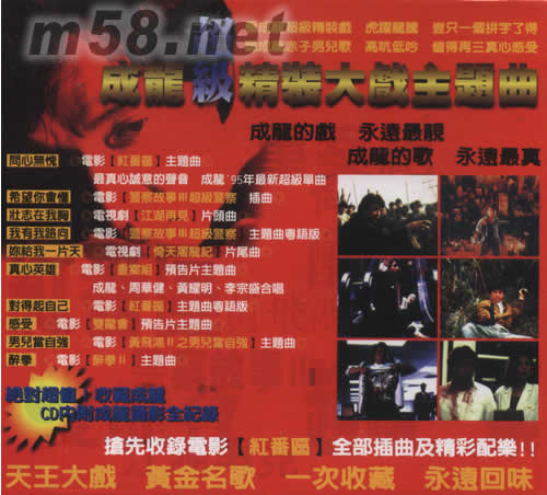 成龍超級精裝大戲主題曲(m58.net) 完全收錄成龍95最新超級單曲及歷年影視金曲代表作 搶先收錄電影 [紅番區]全部插曲及精彩配樂 CD內附成龍攝影全紀錄