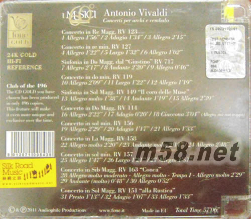 60周年紀(jì)念專輯 限量24K金碟版 ANTONIO VIVALDI 24K 金碟專輯背面圖片