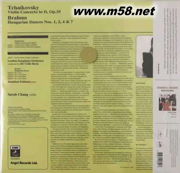 VIOLIN CONCERTO IN D, etc 柴可夫斯基:D大調小提琴協奏曲;布拉姆斯:匈牙利舞曲 黑膠(m58.net) 沙拉張<柴可夫斯基:小提琴協奏曲>LP,科林戴維斯指揮,倫敦交響樂團,年僅十歲的她把柴可夫斯基的小提琴協奏曲演繹的自然優雅,充滿詩意與相像力,是她最完美的唱片之一。180克黑膠