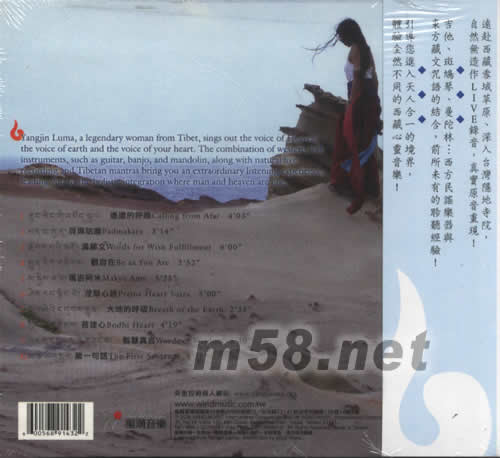 央金西藏天籟女聲(m58.net) 來自西藏的傳奇女子 宇宙合鳴的天籟歌聲^^^^ 遠(yuǎn)赴西藏雪域草原、深入臺(tái)灣隱地寺院,自然無造作LIVE錄音,真實(shí)原音重現(xiàn)! 吉他、斑鳩琴、曼陀林…西方民謠樂器與東方藏文咒語的結(jié)合,前所未有的聆聽經(jīng)驗(yàn)! 引導(dǎo)您入天人合一的境界,體驗(yàn)全然不同的西藏心靈音樂!