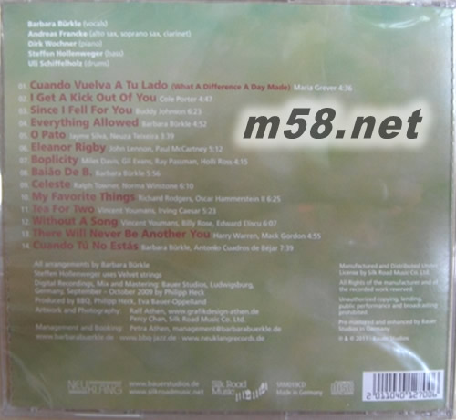 1. CUANDO VUELVA A TU LADO 2. I GET A KICK OUT OF YOU 3. SINCE I FELL FOR YOU 4. EVERYTHING ALLOWED 5. O PATO 6. ELEANOR RIGBY 7. BOPLICITY 8. BALAO DE B. 9. CELESTE 10. MY FAVORITE THINGS 11. TEA FOR TWO 12. WITHOUT A SONG 13. THERE WILL NEVER BE ANOTHER YOU 14. CUANDO TU NO ESTAS