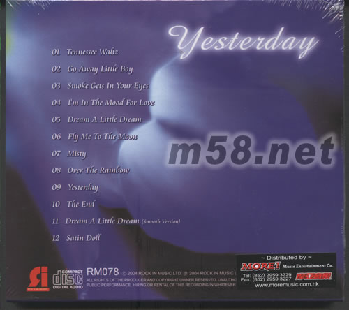 1、TENNESSEE WALTZ 2、GO AWAY LITTLE BOY 3、SMOKE GETS IN YOUR EYES 4、I‘M IN THE MOOD FOR LOVE 5、DREAM A LITLE DREAM 6、FLY ME TO THE MOON 7、MISTY 8、OVER THE RAINBOW 9、YESTERDAY 10、THE END 11、DREAM A LITTLE DREAM(SMOOTH VERSION) 12、SATIN DOLL