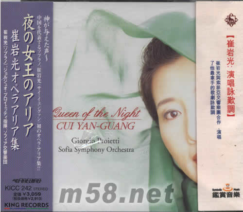 夜之女王演唱詠嘆調(日本版)(m58.net) 崔巖光與索菲亞交響樂團合作,演唱了她最拿手的歌劇詠歡詞,魔笛、杜蘭朵公主、諾瑪、以及董尼才悌第一歌劇[安娜·波連娜]中的[為故鄉哭泣],再加上崔巖光的成名作[可愛的小鳥],使的這張專輯呈現出劇力萬鈞的氣勢。
