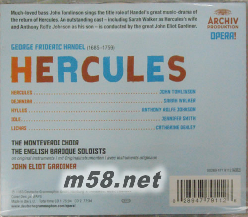 韓德?tīng)?神劇-赫丘力士全曲Handel:Hercules專輯背面圖片