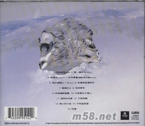 1、共同進退(NEW) 2、每一個今天(NEW) 3、無情雨(NEW) 4、一朵朵春蕾(春蕾行動主題曲)(NEW) 5、陪你過開心一天(NEW) 6、幸運就是遇到你 7、遙遠的心 8、夜長夢多 9、同想擁有醉鄉里 10、只因愛你才傷心 11、這刻向你沖 12、不再悲觀 13、情人的小說 14、不知這是愛 15、回憶