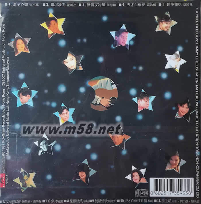 01. 浪子心聲 -徐小鳳 02. 鐵塔凌云 -黃凱芹 03. 無情夜冷風 -周慧敏 04. 天才白癡夢 -譚詠麟 05. 世事如棋 -蔡國權 06. 夜半輕私語 -陳慧嫻 張學友 07. 印象 -李克勤 08. 梨渦淺笑 -草蜢 09. 雙星情歌 -關淑怡 10. 天才白癡往日情 -黎明 11. 學生哥 -周影 劉小慧 黎瑞恩