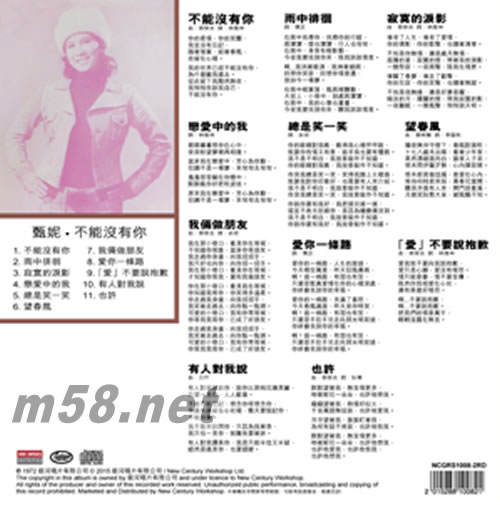 不能沒有你專輯背面圖片