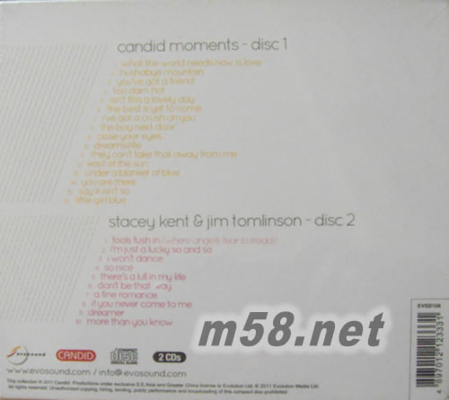 價(jià)格為估,以實(shí)到貨為準(zhǔn)! Candid Moments真性情精選(m58.net) 「BBC爵士大獎(jiǎng)」肯定之首席爵士女伶史黛西.肯特經(jīng)典名演一次收錄,一聽難忘的甜美嗓音與動(dòng)人詮釋! 目前已躍升為全球首席爵士女伶的史黛西.肯特畢業(yè)於紐約Sarah Lawrence學(xué)院,后來又前往倫敦深造,不過她的本科並不是音樂,而是文學(xué),也因?yàn)樯詈竦奈膶W(xué)底子,造就了她詮釋歌曲的獨(dú)到之處。在倫敦因緣際會(huì)下認(rèn)識(shí)了薩克斯風(fēng)手吉姆.湯林森而開啟了她的演唱生涯,藉著在知名的爵士俱樂部駐唱,使得史黛西獲得了Candid唱片的一紙合約,1997年發(fā)行她首張個(gè)人專輯「閉上雙眼」(Close Your Eyes),一推出馬上獲得樂評(píng)的肯定與樂迷的喜愛。接著又陸續(xù)推出了「溫柔陷阱」(The Tender Trap)與「釋放自己」(Let Yourself Go)兩張大碟。「釋放自己」是一張向美國影、歌、視三棲巨星佛雷.亞斯坦(Fred Astaire)致敬的專輯,史黛西融入自己的經(jīng)歷與體會(huì),重新詮釋佛雷所唱過的美國偉大作曲家名曲,表現(xiàn)出她詮釋歌曲與眾不同的深厚功力。 接著她又在Candid唱片推出「愛在午夜夢(mèng)迴時(shí)」(Dreamsville)與「In Love Again」兩張專輯,「In Love Again」則再次選擇了美國偉大爵士作曲家羅杰斯(Richard Rodgers)的作品演繹,同時(shí)再次展現(xiàn)出她那純凈甜美的嗓音,打動(dòng)無數(shù)歌迷的心。這套「真性情雙CD超級(jí)精裝」的第一張CD就是精選史黛西.肯特在Candid唱片時(shí)期所灌錄的經(jīng)典歌曲,讓歌迷一次回味她經(jīng)典的詮釋與美妙的嗓音。特別附贈(zèng)的第二張CD「純情羅曼史」則是她與老公吉姆.湯林森一系列的共演,藉著音樂述說沈浸在熱戀中的濃情蜜意。