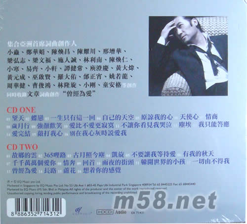 情傷情深歲月集 [絕版](m58.net) 集合亞洲首度席人創作人 小蟲,鄭華娟,陳煥川,邢增華,梁弘志,梁文福,施人誠,林利南,陳煥仁,小寒,易齊,小軒,譚健常,庾澄慶,黃大煒,黃元成,巫啟賢,邰正宵,姚若龍,周華健,曹俊鴻,林隆,小剛,童安格,等創作同時收錄文章詞曲創作"曾經為愛"