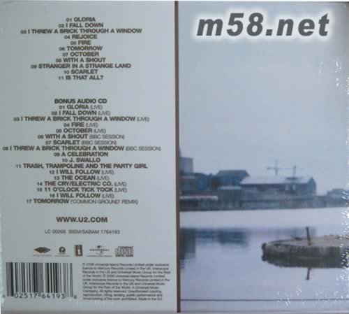 DISC 1: 1 Gloria 2 I Fall Down 3 I Threw a Brick Through a Window 4 Rejoice 5 Fire 6 Tomorrow 7 October 8 With a Shout 9 Stranger In a Strange Land 10 Scarlet 11 Is That All? DISC 2: 1 Gloria [Live At the Hammesmith, Palais London] 2 I Fall Down [Live At the Hammesmith, Palais London] 3 I Threw a Brick Through a Window [Live At the Hammesmith, Palais London] 4 Fire [Live At the Hammesmith, Palais London] 5 October [Live At the Hammesmith, Palais London] 6 With a Shout [Richard Skinner BBC Session] 7 Scarlet [Richard Skinner BBC Session] 8 I Threw a Brick Through a Windwo [Richard Skinner BBC Session] 9 Celebration, A 10 J. Swallo 11 Trash, Trampoline and the Party Girl 12 I Will Follow [Live At the Paradise Theater, Boston] 13 Ocean [Live At the Paradise Theater, Boston], The 14 Cry/Electric Co. [Live At the Paradise Theater, Boston], The 15 11 O'Clock Tick Tock [Live At the Paradise Theater, Boston] 16 I Will Follow [Live From Hattem, Netherlands] 17 Tomorrow [Bono & Adam Clayton, Common Ground Remix]