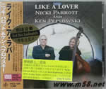 Like a Lover 宛如戀人(m58.net) NICKI PARROTT & KEN PEPLOWSKI 妮基派洛特與肯佩普洛夫斯基 音響迷都知道,越是簡單的編制,越能測試系統的傳真能力。這張「宛如戀人」由妮基派洛特與肯佩普洛夫斯基兩位分別演奏貝斯與長笛。兩位樂手在各自領域皆有卓越的成就,像是妮基在美國除了是歌手之外,憑著優異的彈奏技巧,還連續兩年獲得日本Swing Journal頒發的最佳爵士演奏大獎。專輯中收錄許多經典歌曲,都是由她主唱,並以貝斯與長笛作歌曲架構。專輯在知名的Avatar Studio錄製,音質純凈通透之外,樂器的質感與細節表現出色,當然是值得收藏的佳作。