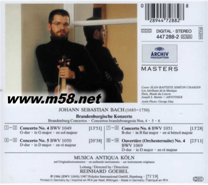 雷恩哈德 戈貝爾 - 巴赫:No. 4-6勃蘭登堡協奏曲Musica Antiqua Koln & Reinhard Goebel - Bach: Brandenburg Concertos No. 4-6專輯背面圖片