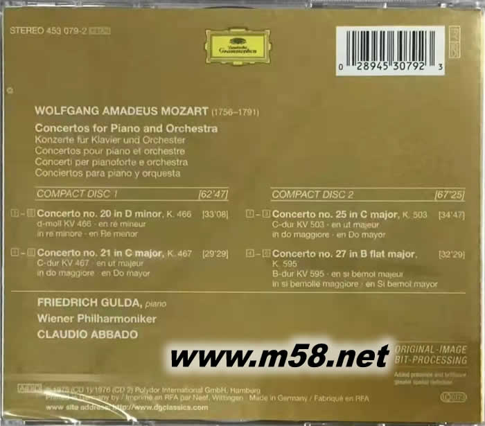 AClaudio Abbado & Friedrich Gulda - Mozart: Piano Concertos No.21 25 & 27專輯背面圖片