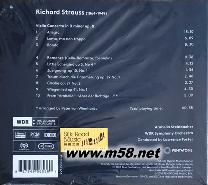 施特勞斯小提琴協奏曲/抒情小品選 Richard Strauss : Violin Concerto Miniatures SACD專輯背面圖片
