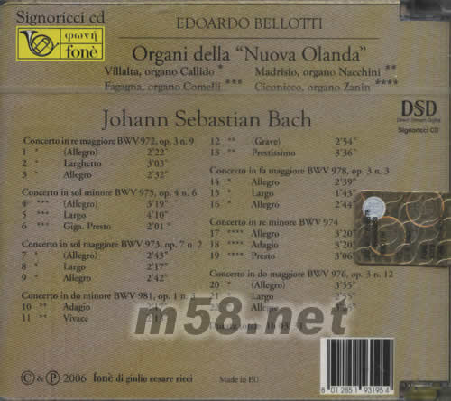 ORGANI DELLA NUOVA OLANDA巴赫管風琴協(xié)奏曲(m58.net) SIGNORICCI CD發(fā)燒系列 巴赫管風琴協(xié)奏曲 BWV 972,973,974,975,976,978E981