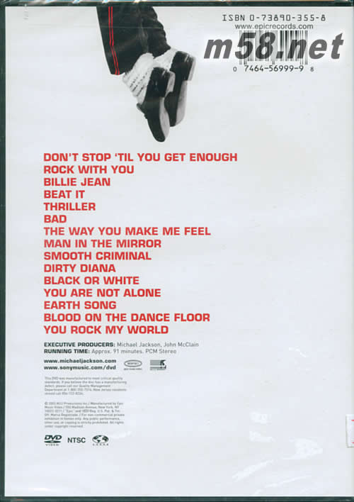 1、DON’T STOP‘TIL YOU GET ENOUGH 2、ROCK WITH YOU 3、BILLIE JEAN 4、BEAT IT 5、THRILLER 6、BAD 7、THE WAY YOU MAKE ME REEL 8、MAN IN THE MIRROR 9、SMOOTH CRIMINAL 10、DIRTY DIANA 11、BLACD OR WHITE 12、YOU ARE NOT ALONE 13、EARTH SONG 14、BLOOD ON THE DANCE FLOOR 15、YOU ROCK MY WORLD