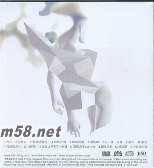 01. 有人 02. 沒(méi)有人 03. 我有時(shí)覺(jué)得 04. 耿耿于懷 05. 雌雄同體 06. 原地轉(zhuǎn) 07. 另一邊 08. 蒙 09. 借火 10. 酷兒 11. 吃鯨魚(yú)的人 12. 林民龍 13. 從此世界多一分鐘 14. 寫得太多:duet ver 15. 超生培欲 16. 紙箱國(guó) 17. 上春風(fēng)的課